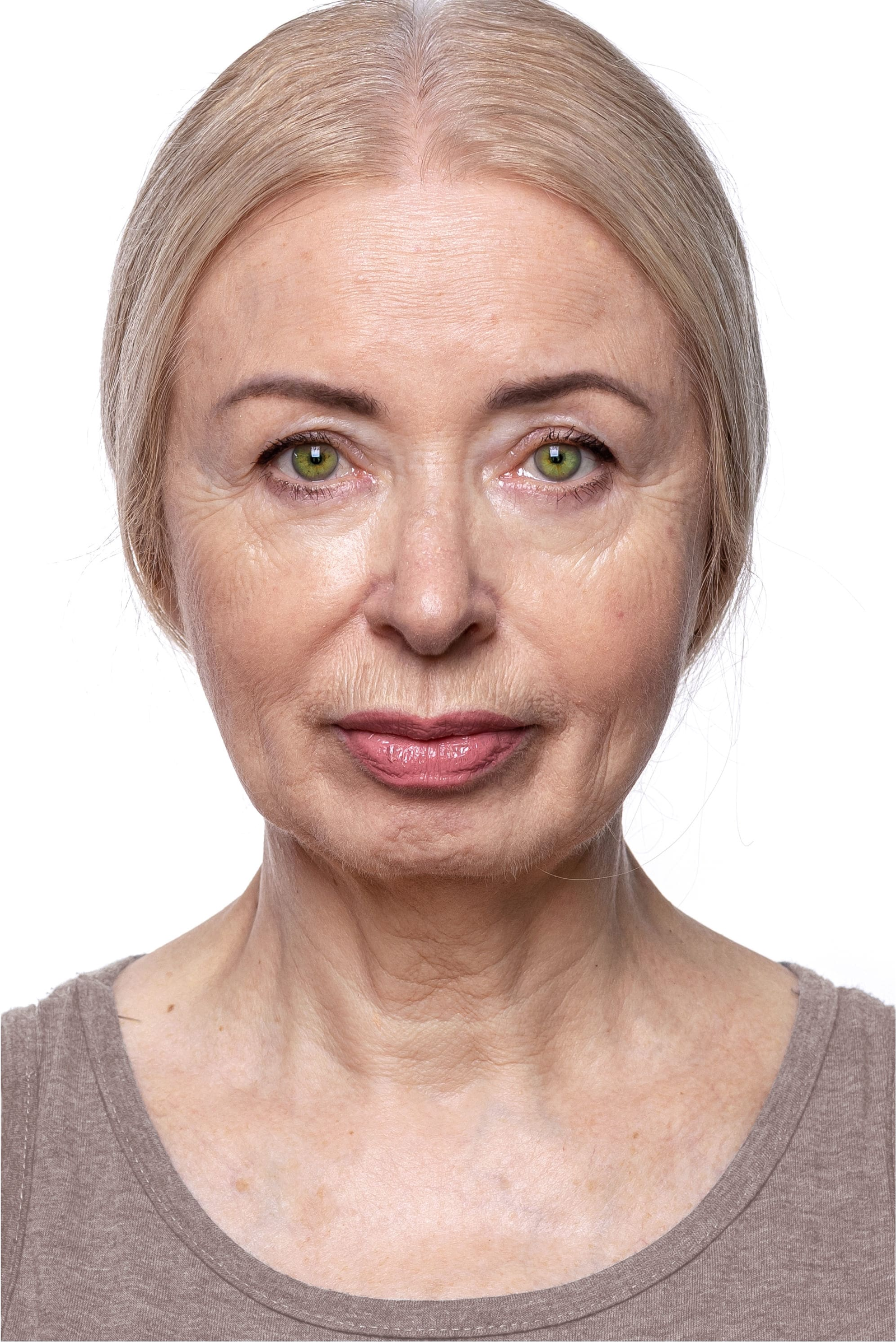 - zmarszczkach mimicznych, drobnych liniach, głębokich zmarszczkach, opadających powiekach, workach i cieniach pod oczami, zwiotczałym podbródku, niedoskonałościach i przebarwieniach skóry